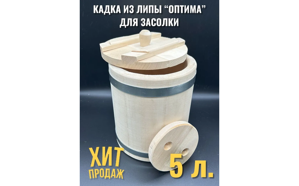 Кадка Добропаровъ из липы, 10л, нержавеющий обруч, с крышкой 1490754Сер. номер: 1490754