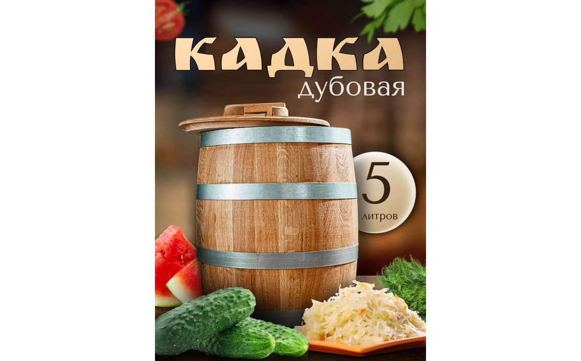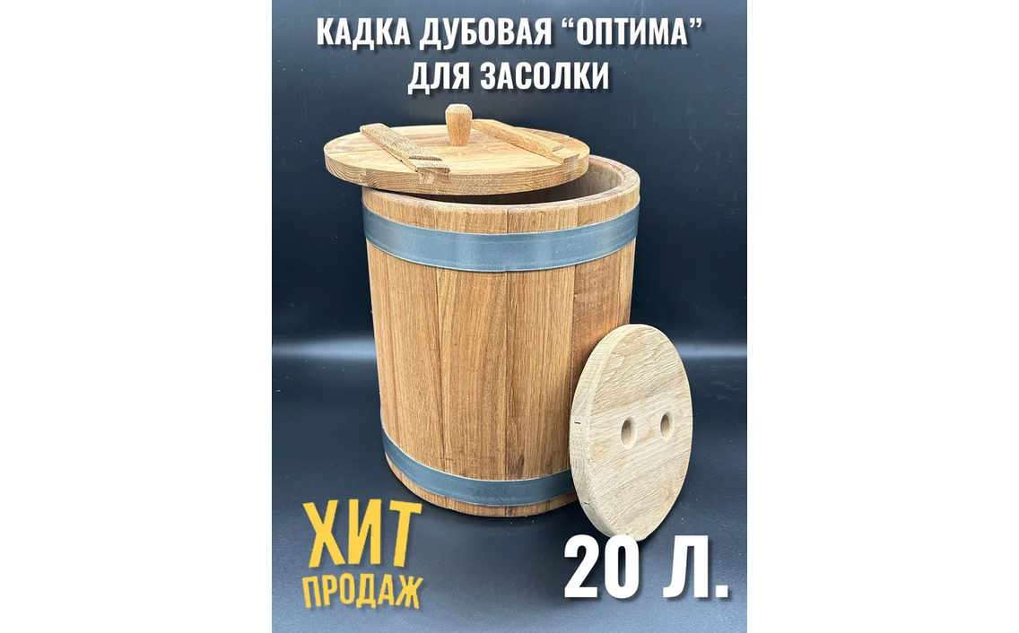Кадка дубовая, 15л, металлический обруч, с крышкой, с гнетомСер. номер: 4606522