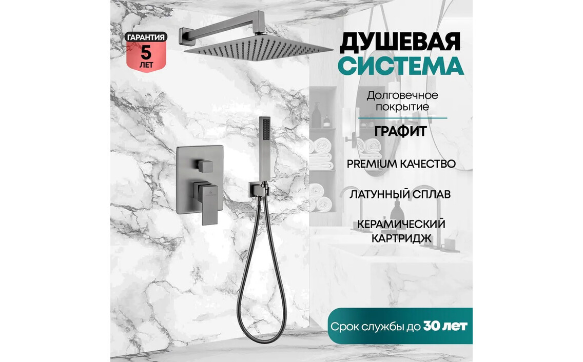 Душевая система скрытого монтажа Grocenberg GB5089BG-3 ГрафитСер. номер: 5089BG-3