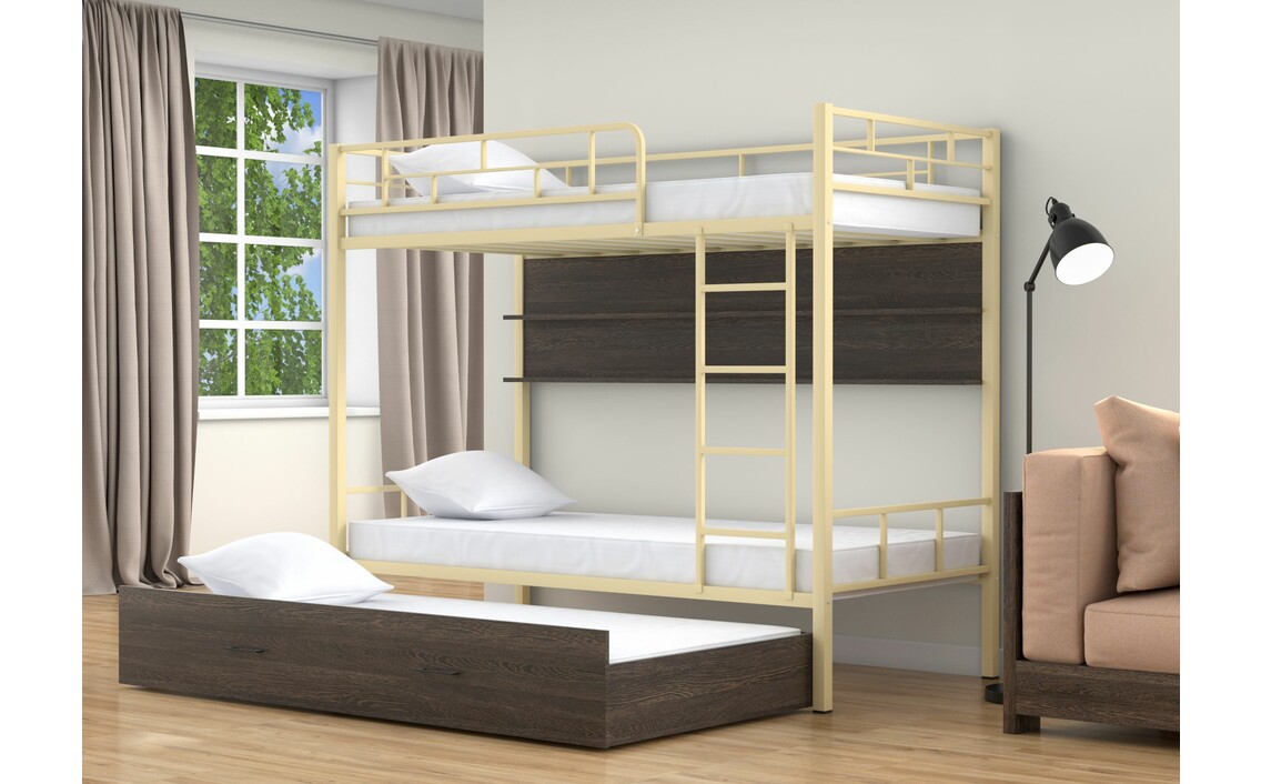 Трехъярусная кровать 4 сезона металлическая Валенсия выкатная с полкой бежевыйСер. номер: 4s-va90-vykat_ypv-1014
