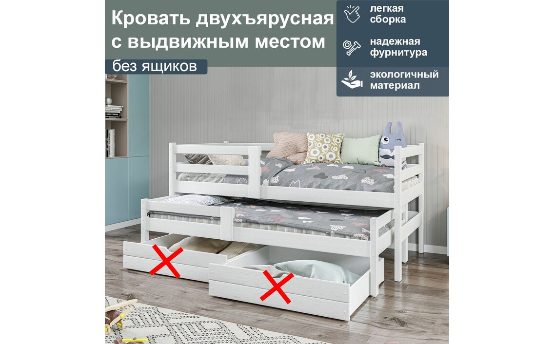 Кровать двухъярусная ММ с выдвижным местом без ящиков, спальное 190/80, белыйСер. номер: B-PBr-0002b-190-80-col-w