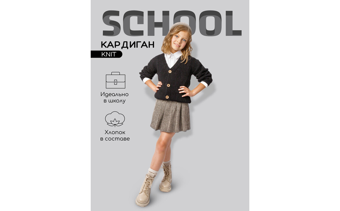 Кардиган для девочек Amarobaby AB-OD21-KNIT19 черный 134Сер. номер: AB-OD21-KNIT19/09-134