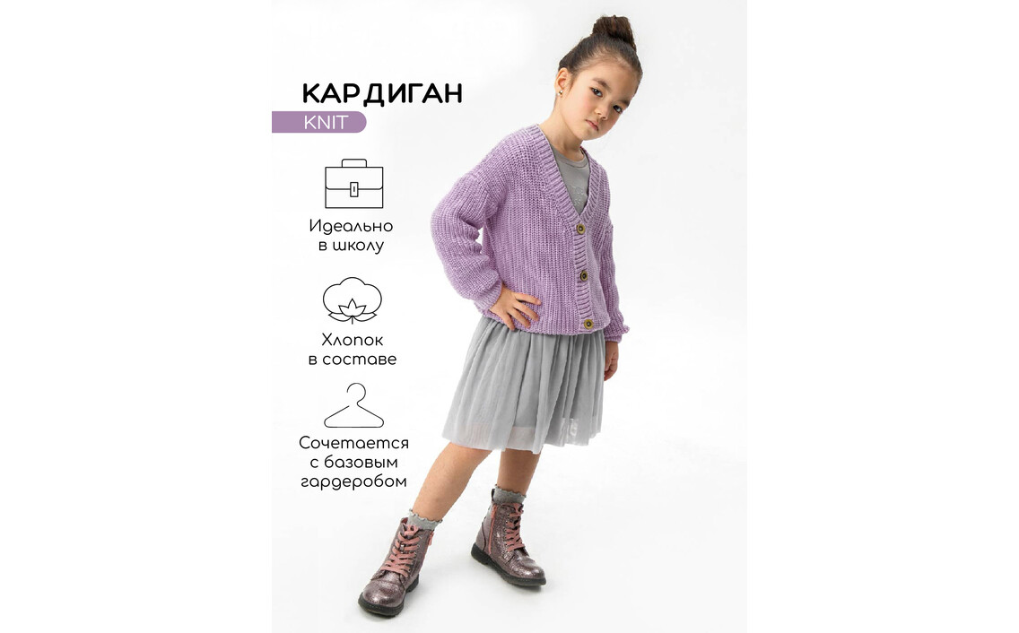 Кардиган детский Amarobaby KNIT, сиреневый AB-OD21-KNIT19/17 р.128Сер. номер: AB-OD21-KNIT19/17-128