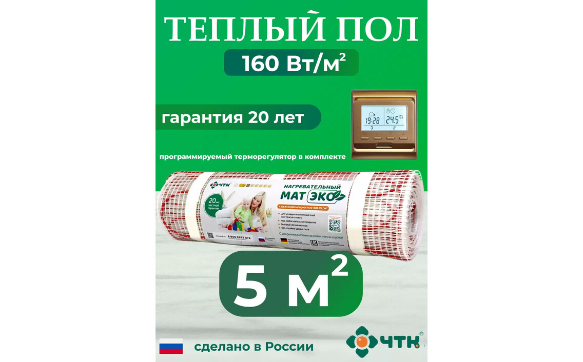 Теплый пол электрический ЧТК 5 м2 с золотистым терморегулятором CHTKXXEKO51GСер. номер: 51GCHTEKO160X800XRU