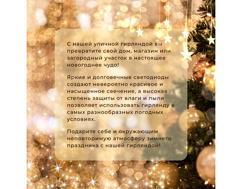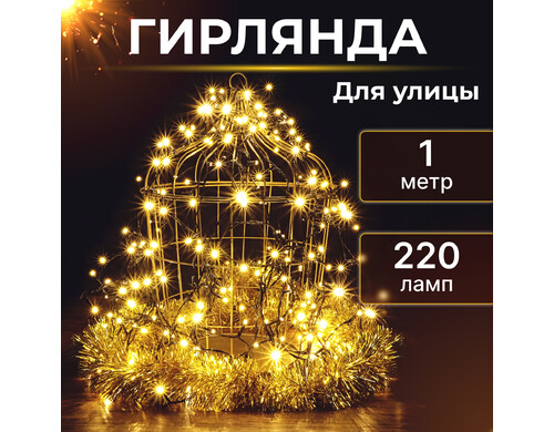 Электрогирлянда Reason уличная 220 LED теплый белый 100/200 см без стартового шнураСер. номер: 21328451