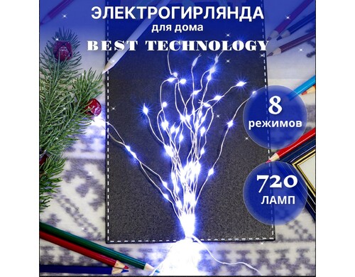 Электрогирлянда Best Technology серебристый 720 LED холодный синий со стартовым шнуромСер. номер: 44079863