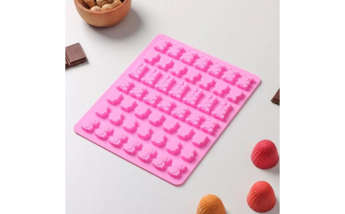 Форма силиконовая для мармелада Доляна «Зоопарк», 18,5x15x0,5 см, 49 ячеек (2x1,5 см), цвеСер. номер: 9622853