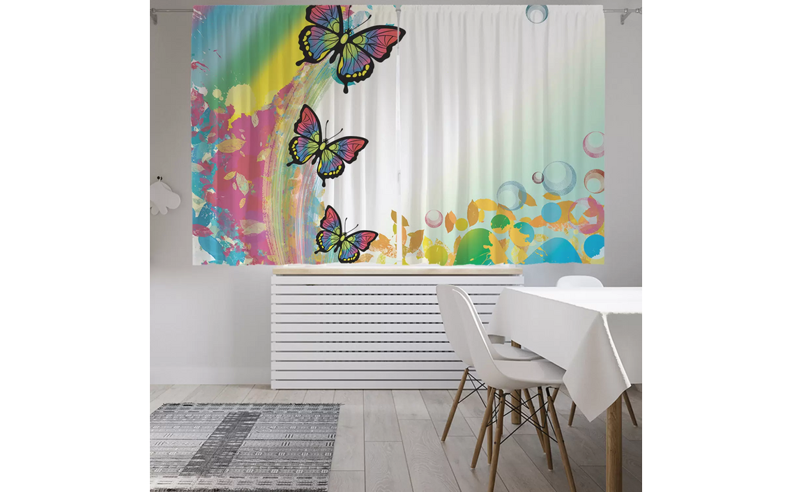 Фотошторы короткие Бабочки после дождя 145х180 2 полотна сатенСер. номер: p_421593_145x180
