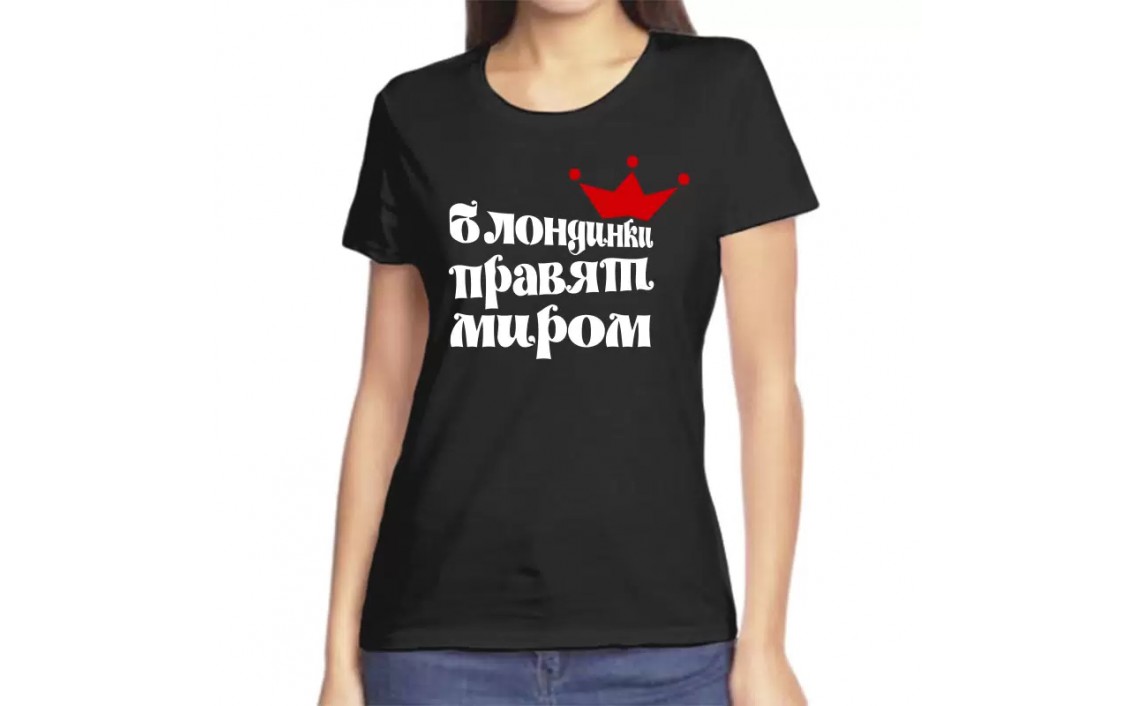 Футболка женская черная 50 р-р блондинки правят миромСер. номер: fzhch_blondinki_pravyat_miromch50