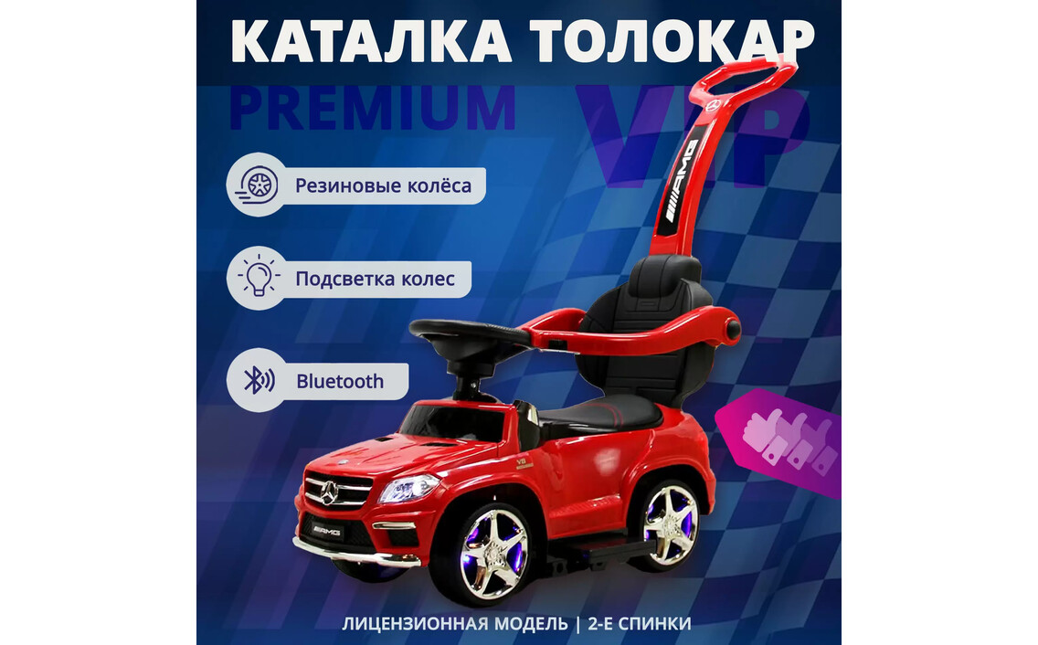 Машинка каталка толокар детский RIVERTOYS Мерседес BT-A888AA-H с Bluetooth красныйСер. номер: BT-A888AA-H.red
