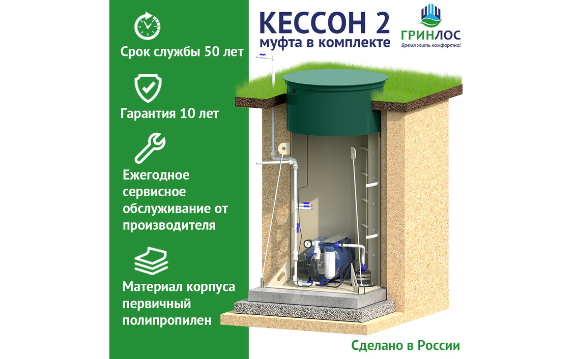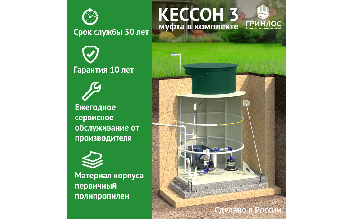 Кессон ГРИНЛОС 1 пластиковый с муфтой 159/200