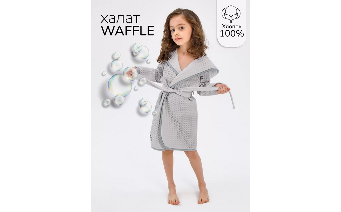 Халат детский Amarobaby AB-OD22-WAF2502, серый, 134Сер. номер: AB-OD22-WAF2502/11-134