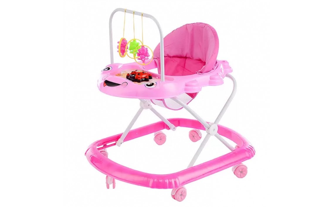 Ходунки Oubaoloon розовые, регулируемая столешница 39х21 см, подвесные игрушки 901-M-1Сер. номер: 901-M-1