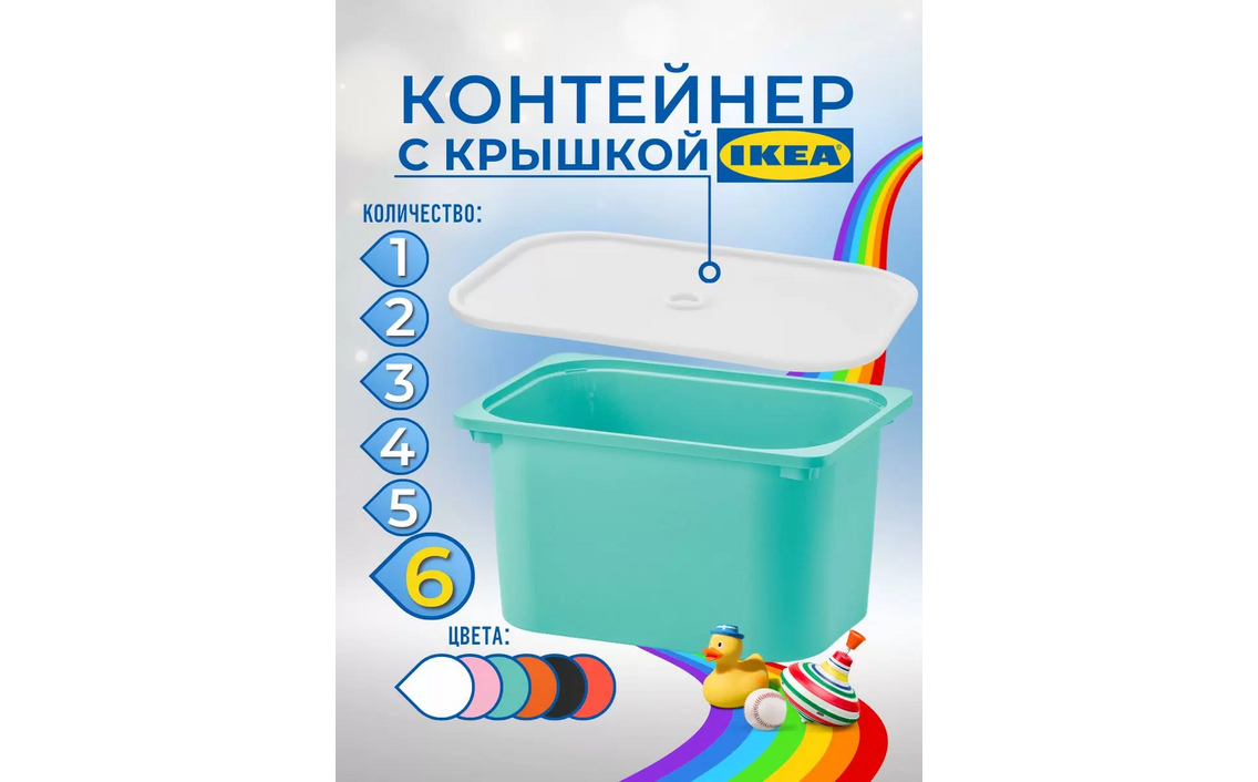 Контейнер для игрушек с крышкой ИКЕА ТРУФАСТ, 42x30x23 см, 6 шт, бирюзовыйСер. номер: 00464033-10366027-6