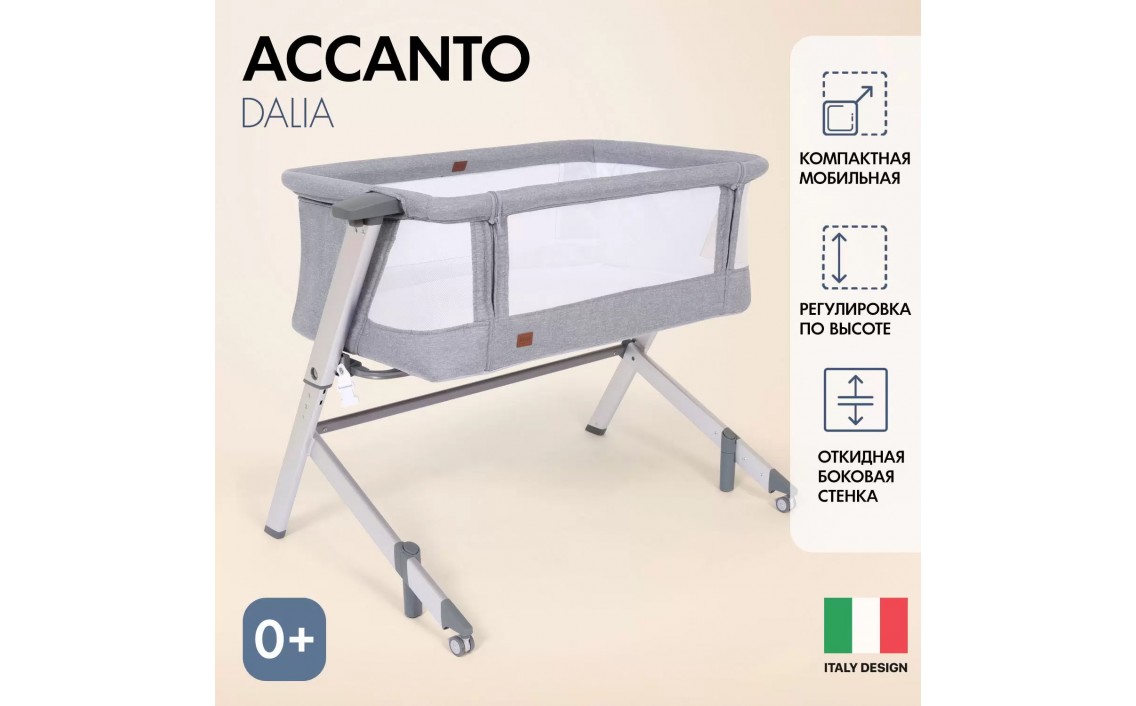 Детская приставная кроватка Nuovita Accanto Dalia (Светло-серый, серебристый)Сер. номер: УТ-0004189Grебристый