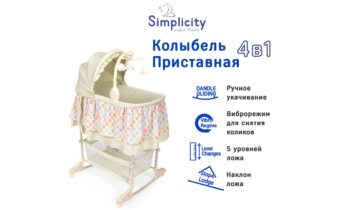 Колыбель детская с электронной системой укачивания Simplicity 3010 Elite (Beige Circles)Сер. номер: SIM_3010E_108
