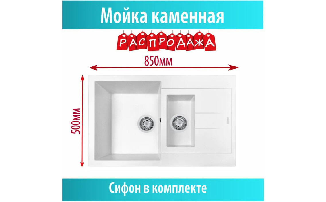 Комплект Teymi 2 в 1 для кухни: мойка Helmi 57х50, белая + смеситель Helmi, хром F01515Сер. номер: F01515