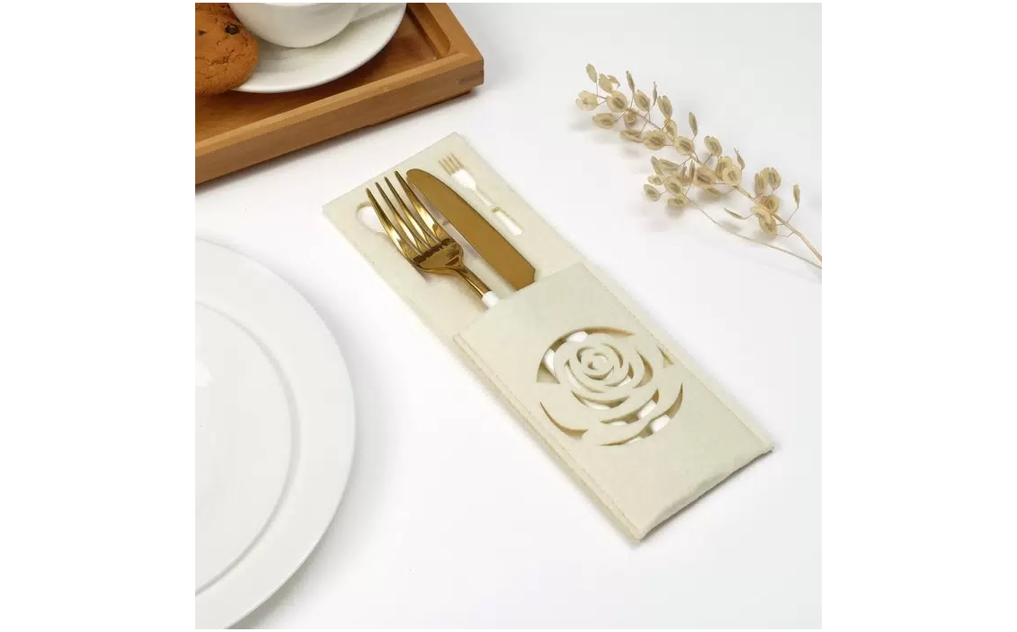 Конверт для столовых приборов Доляна Роза молочный, 9 х 25 , 100% п/э, фетрСер. номер: Р00001513