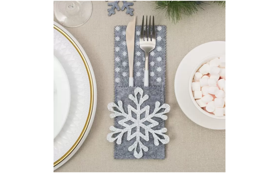 Набор для декора столовых предметов Снежинка, 4 шт., серый 7х8 100% п/э, фетрСер. номер: Р00001513