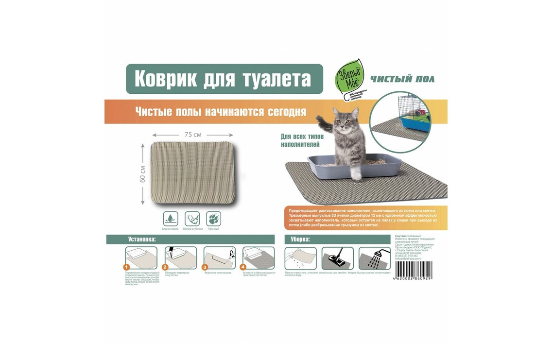 Коврик для кошачьего туалета и клеток грызунов ЗВЕРЬЕ МОЕ 60х75смСер. номер: 14911415782348540271