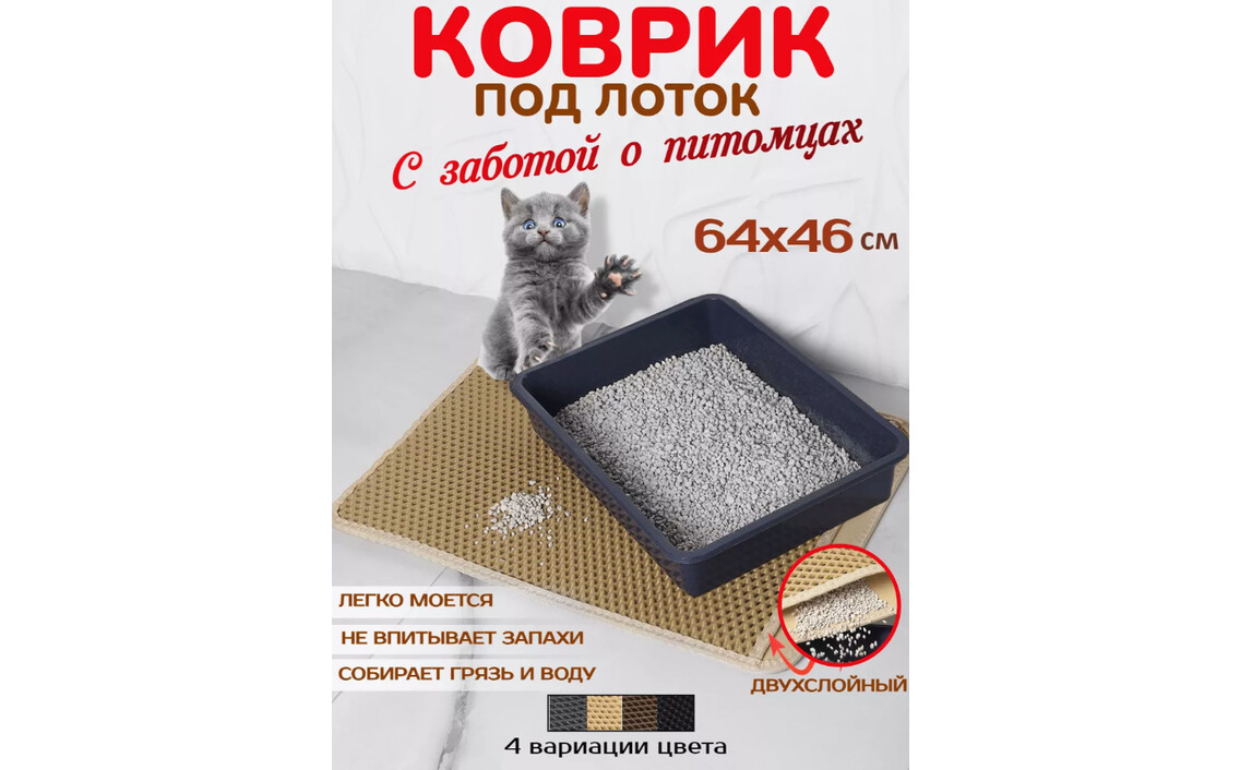 Коврик для кошачьего туалета, двухслойный, бежевый, EVA, 46х64 смСер. номер: 176293981
