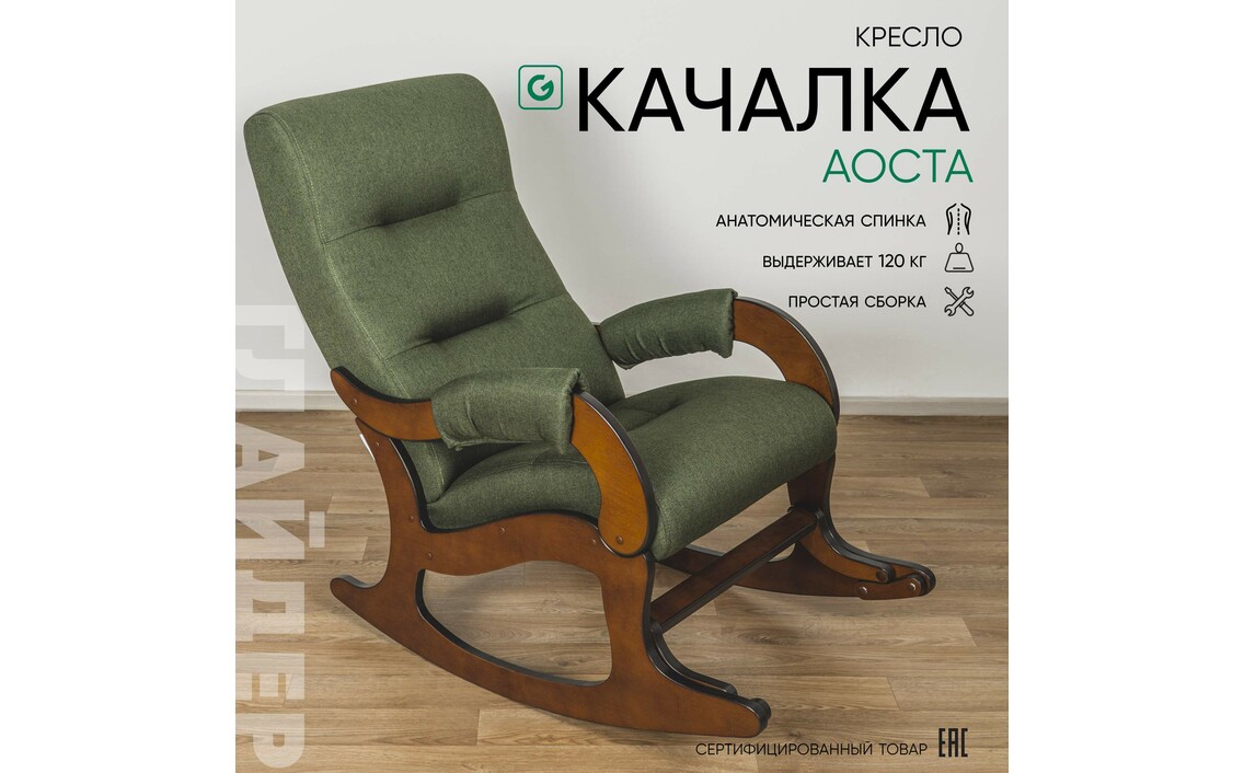 Кресло-качалка с подножкой Glider АостаСер. номер: Аоста качалка LunarForest орех антик