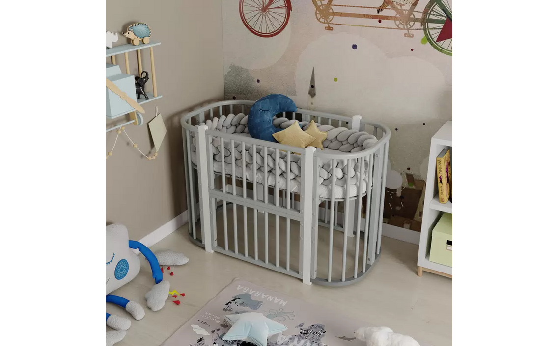 Кроватка детская Malika "MIO" 6 в 1, круглая-овальная, цвет: белыйСер. номер: УТ000001795