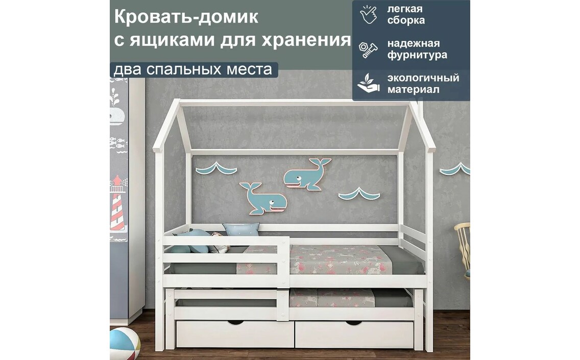 Кровать-домик ММ двухъярусная с ящиками для хранения, спальное верх 160-80, белыйСер. номер: B-PBr-00028b-box-160-80-col-w