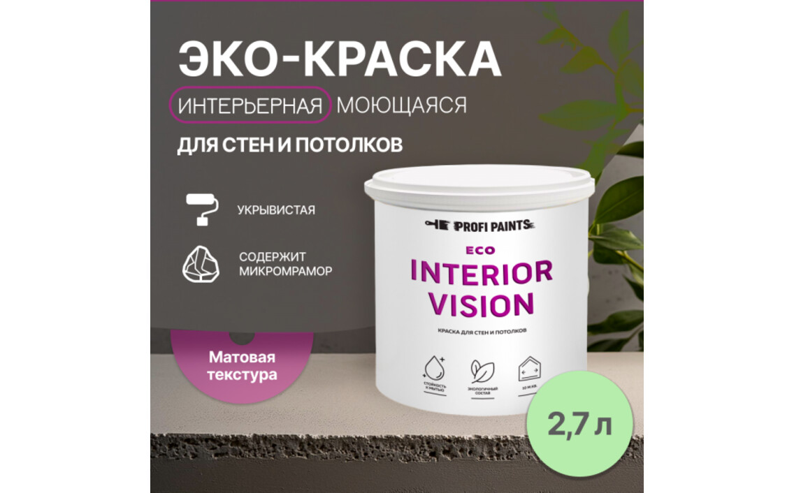 PROFIPAINTS Краска интерьерная для стен и потолков износостойкая матовая Profipaints ECO IСер. номер: 100071492826