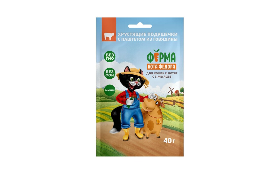 Лакомство для кошек и котят ФЕРМА КОТА ФЁДОРА хрустящие подушечки с паштетом из говядины 40гСер. номер: 6424887693626975871