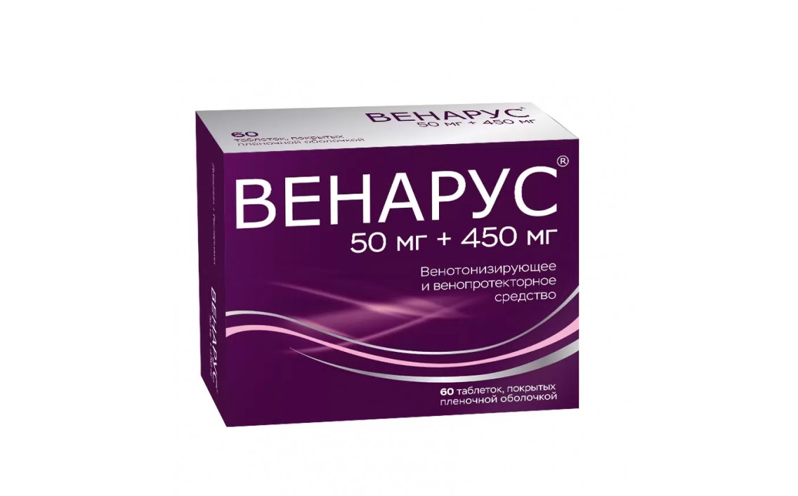 Венарус таблетки покрытые пленочной оболочкой 50мг + 450мг №60Сер. номер: 100066180321