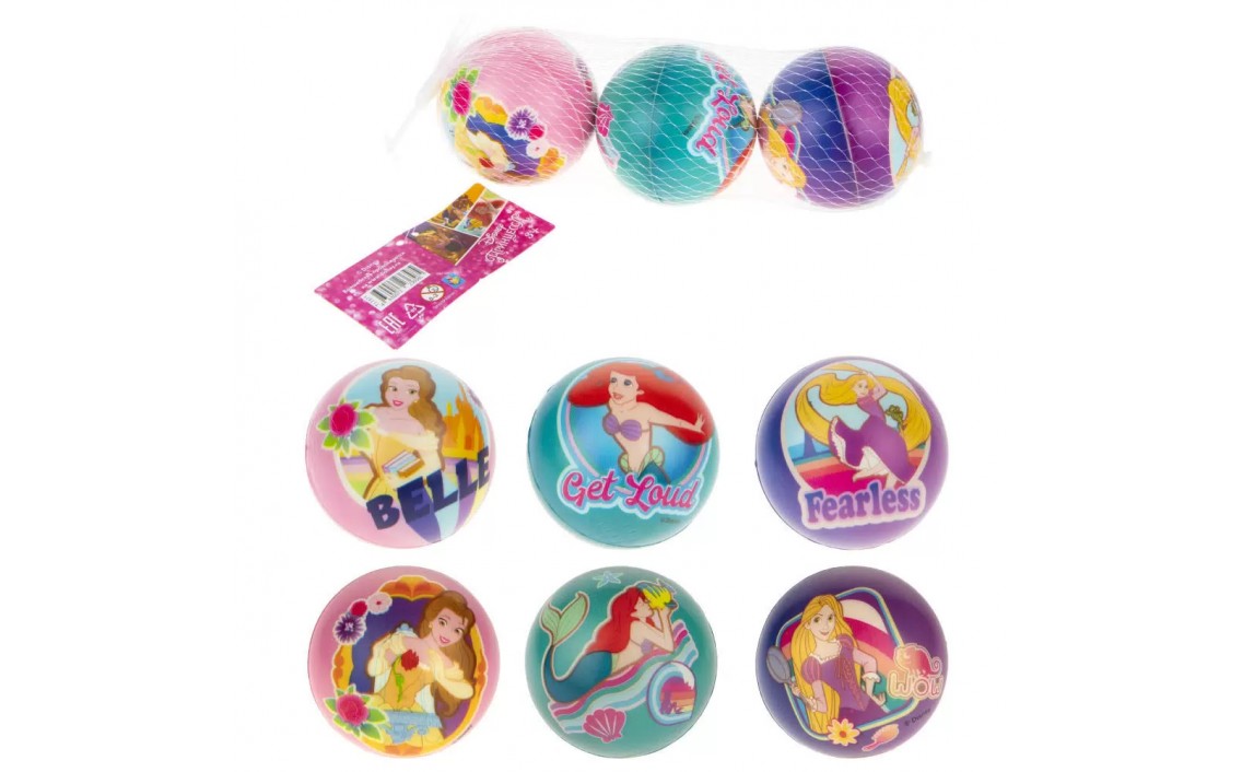 Мяч 1toy Disney Принцессы Рапунцель Русалочка Бэль PU с принтом 7 5 см 3 штСер. номер: Т17371