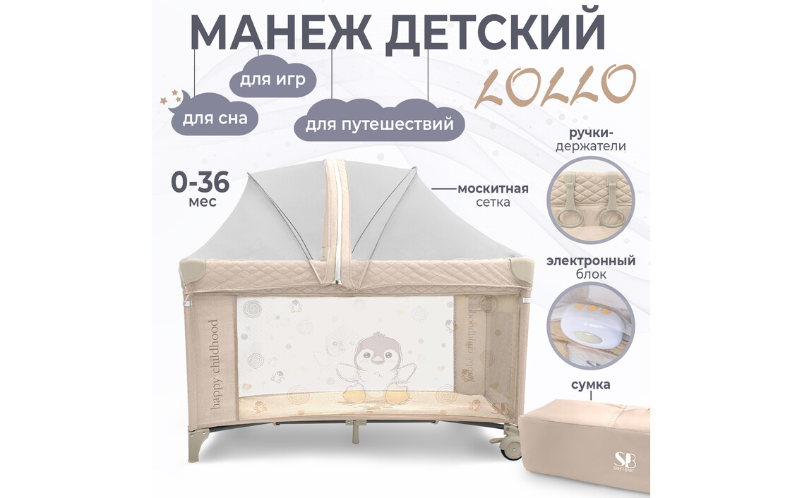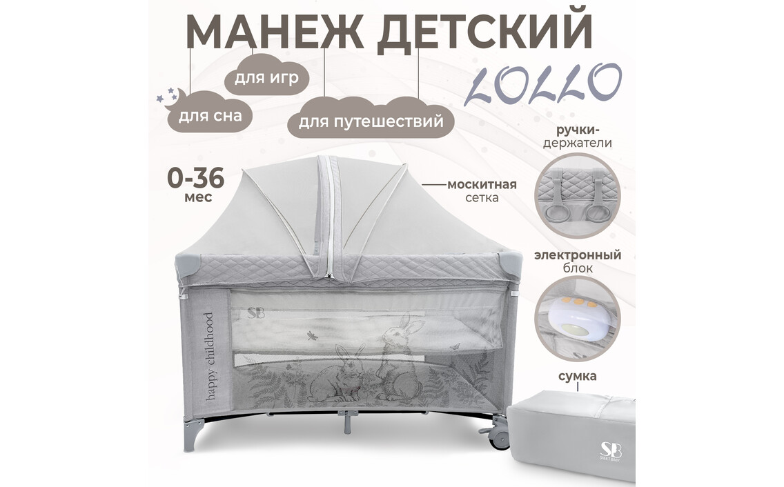 Манеж детский складной Happy Baby WILSON, сумка-чехол в комплекте, серыйСер. номер: Wilson_grey
