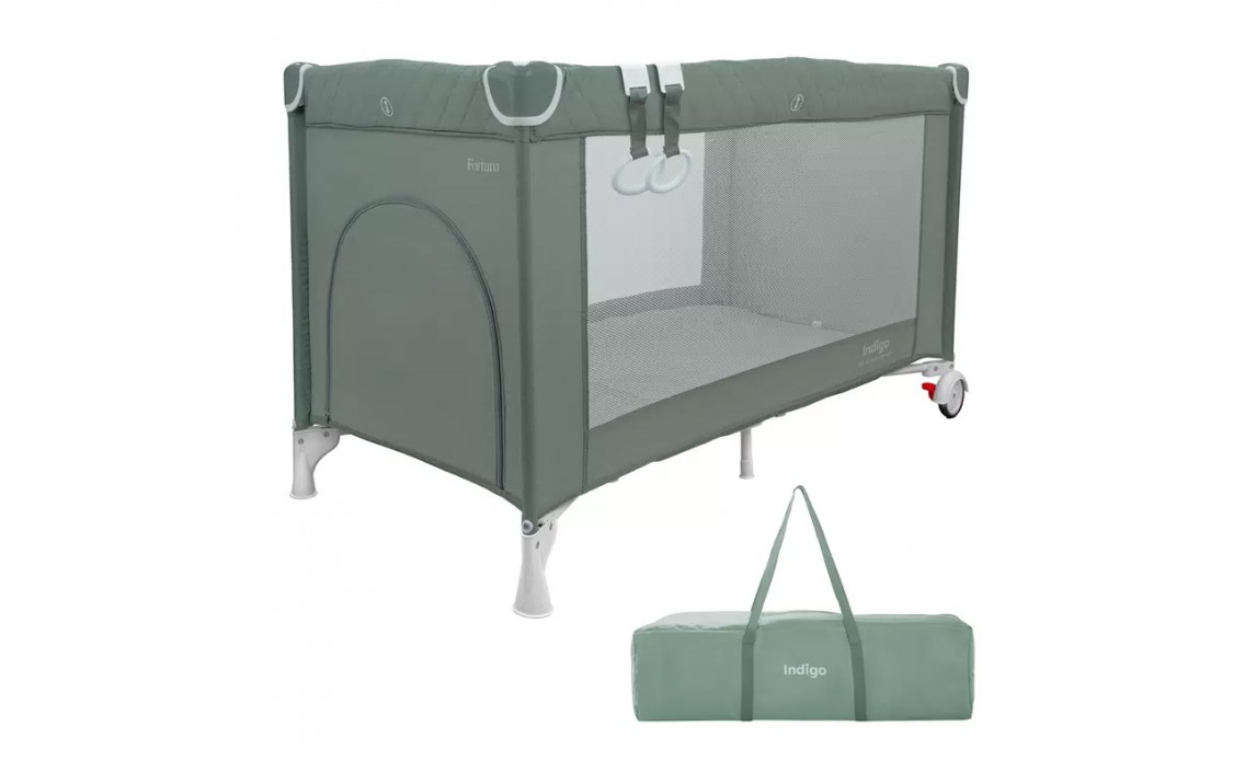 Манеж кровать детский с матрасом Indigo Fortuna с рождения 1 уровень зеленыйСер. номер: 4627183286449