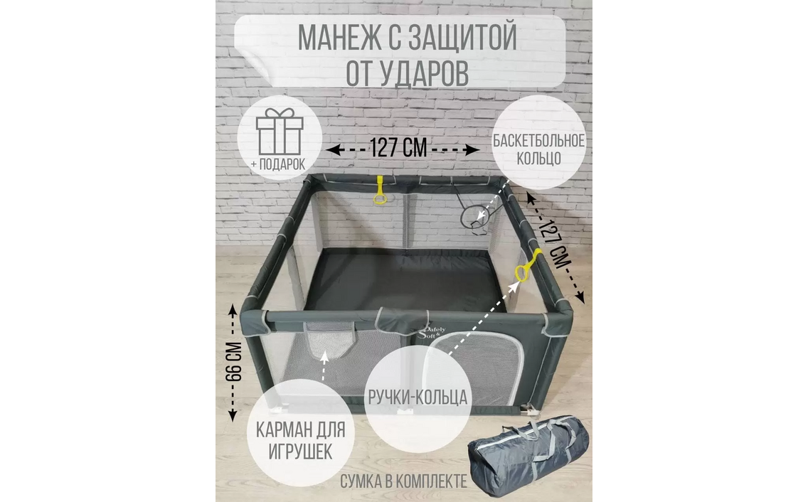 Детский манеж Safely&Soft Игровой усиленный, 120х120 смСер. номер: 24ss07120/se