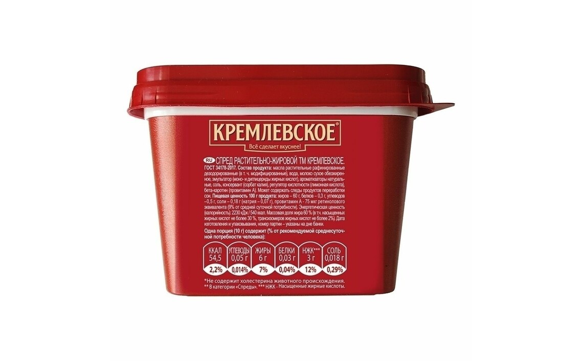 Спред растительно-жировой Россиянка Классический вкус 72,5% 180 гСер. номер: 100028790534