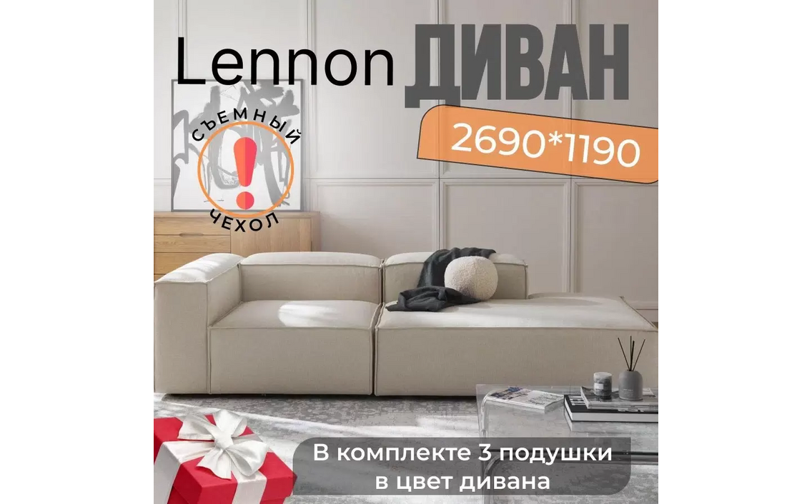 Прямой модульный диван Лига Диванов Монс Лофт 340х110х70 см, бежевыйСер. номер: 119657