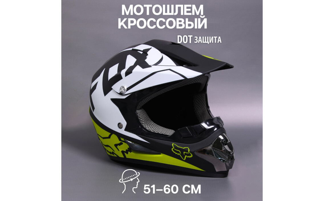 Шлем для мотоцикла кроссовый ПОВЕТРУ WLT125 Фокс бело-желтый матовый XSСер. номер: 243125058XS