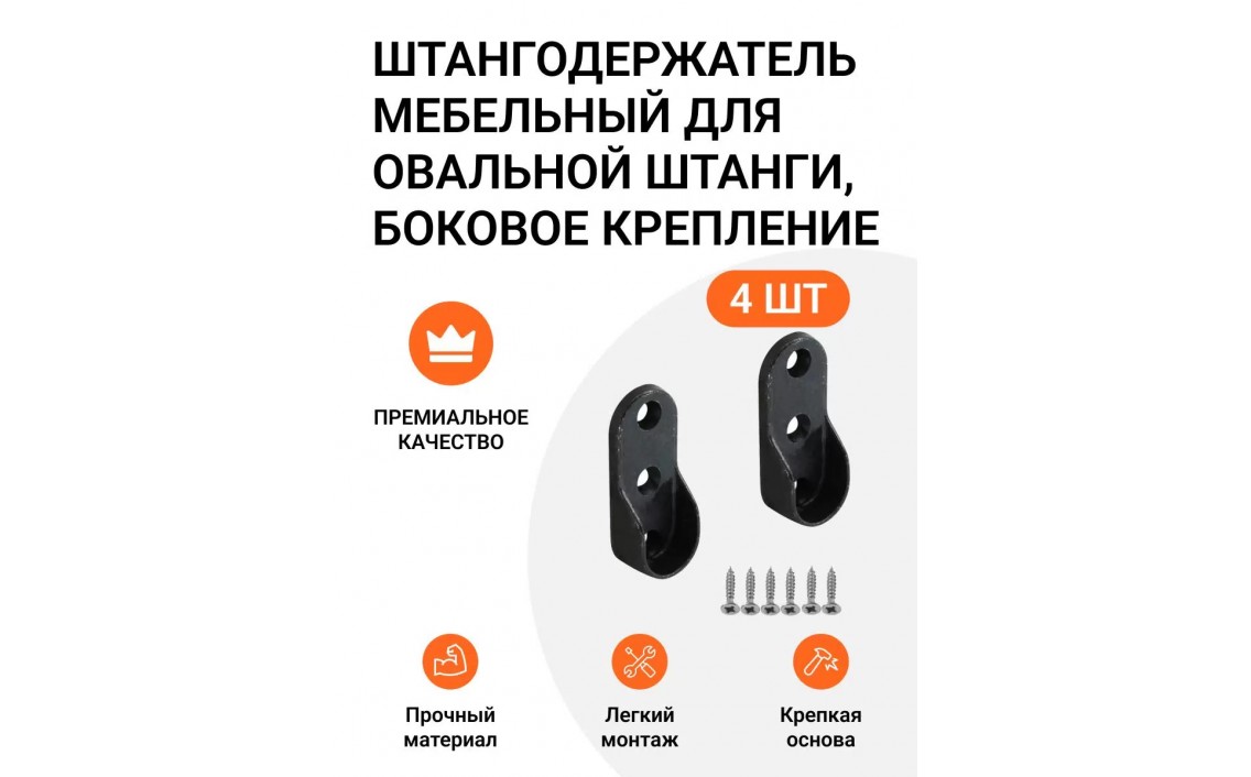 Штангодержатель мебельный Инталика для овальной штанги боковое крепление черный 4 штСер. номер: MP01023