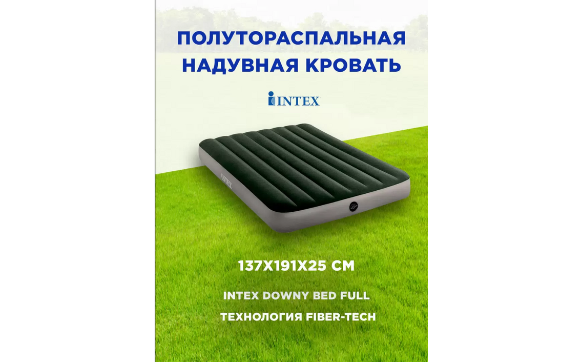 Надувная кровать Intex Downy bed full fiber-tech насос на батарейках 64778 191x137x25 смСер. номер: 64778