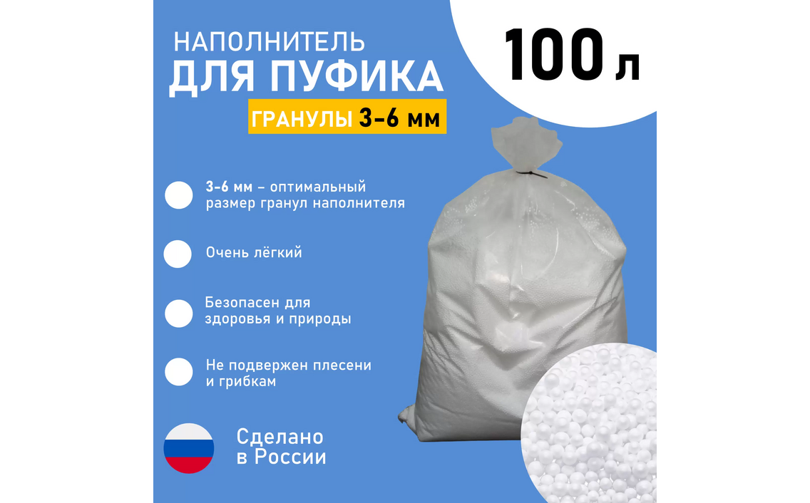 Наполнитель для кресла-мешка 200 литров, мелкие гранулы 1-3 ммСер. номер: Inn_GP200_sb