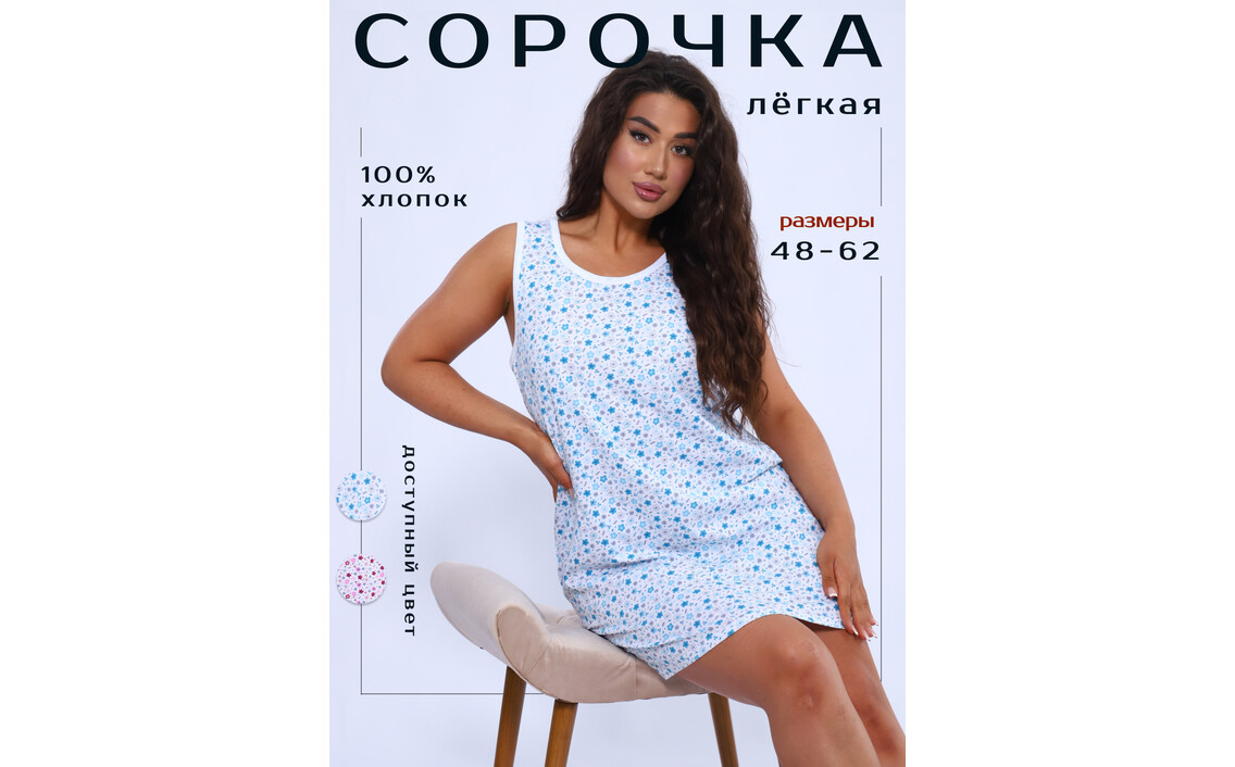 Ночная сорочка женская ТРИКОТАЖ НАТАЛИ 8447 голубая 52 RUСер. номер: 8447/василек/52