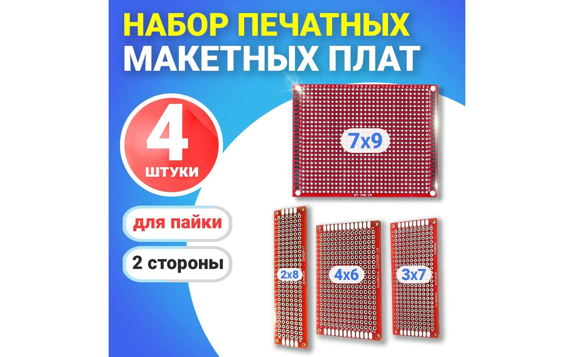 Набор печатных макетных плат GSMIN PCB1, 2x8, 3х7, 4х6см, двухсторонняя для пайки, 3 штукиСер. номер: BT992353
