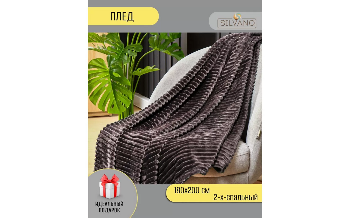 Плед Silvano, 449721-RE Неаполь Полоски, темн-сер 2-сп, 180х200 см, 100%пэСер. номер: 449721-RE
