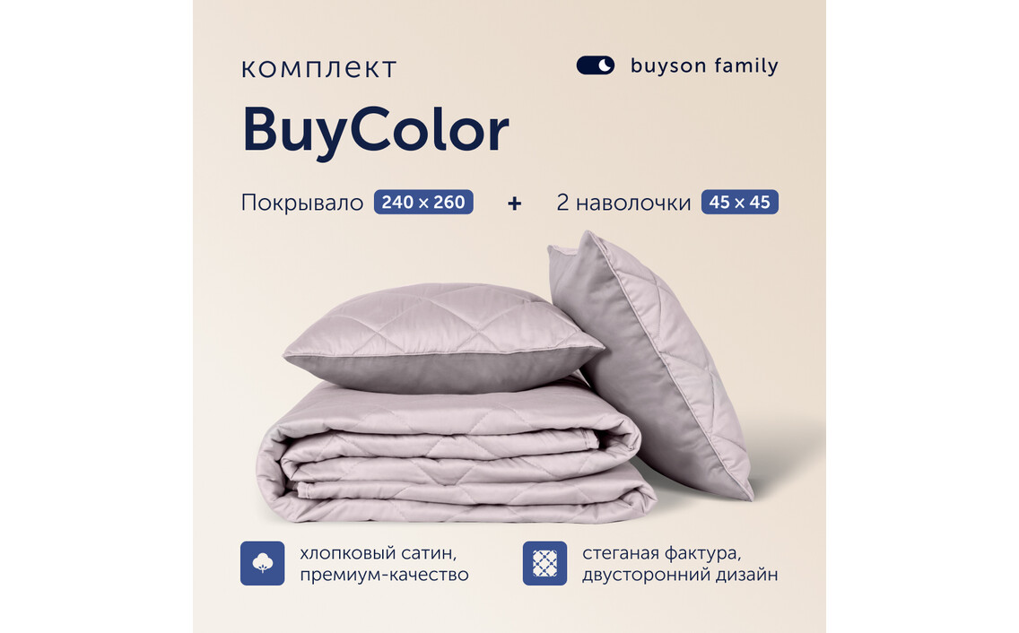 Комплект покрывало + 2 наволочки buyson family BuyColor Песок/Роза, 240х260/45х45смСер. номер: 500118.00702