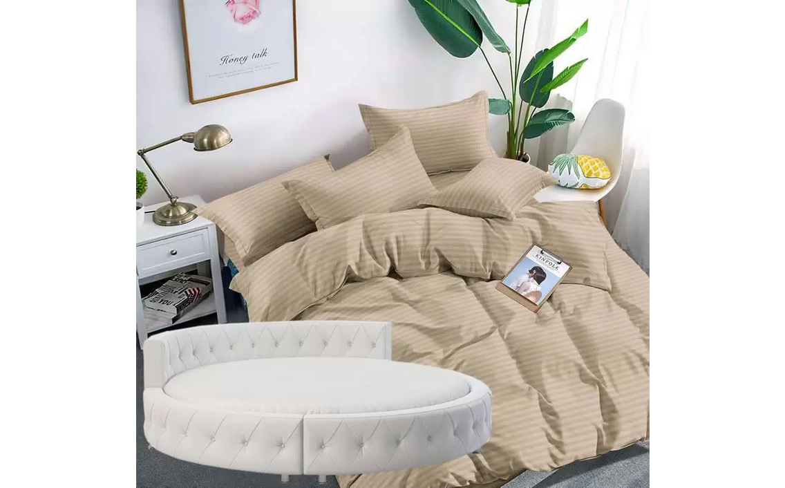 Простыня Maktex круглая из страйп сатина на резинке 200x200x20 Миндаль 1х1Сер. номер: 00-00198538