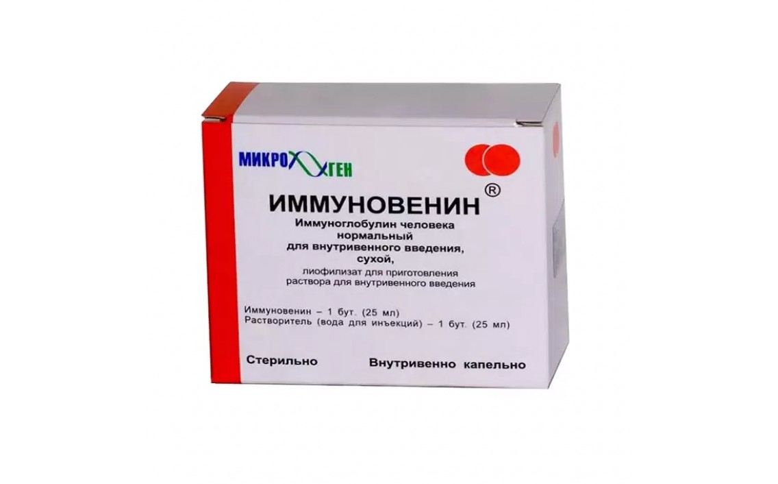 Иммуноглобулин человеческий в/в с растворителем (Иммуновенин) порошок для ин. 25 млСер. номер: 49732