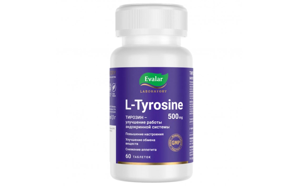 Тирозин Evalar Laboratory 500 мг таблетки 60 шт. по 1,1 гСер. номер: 4602242025726