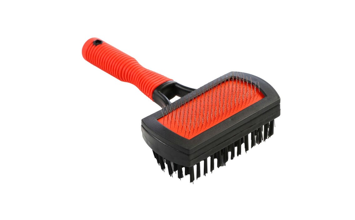 Пуходёрка-щетка для собак SIMA LAND Пижон двухсторонняя с резиновой ручкой 10х16,5см, чёрно-краснаяСер. номер: 3106721323426889732