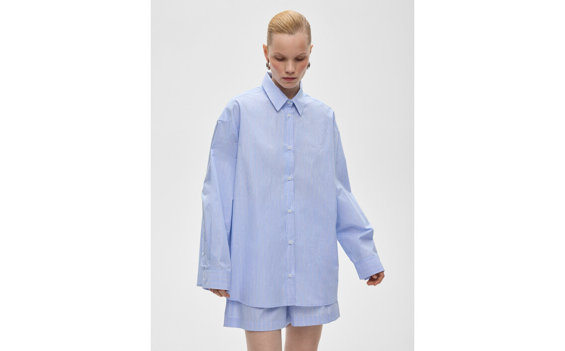 Рубашка женская свободного кроя в полоску, цвет – светло-голубойСер. номер: 7226989253483483935